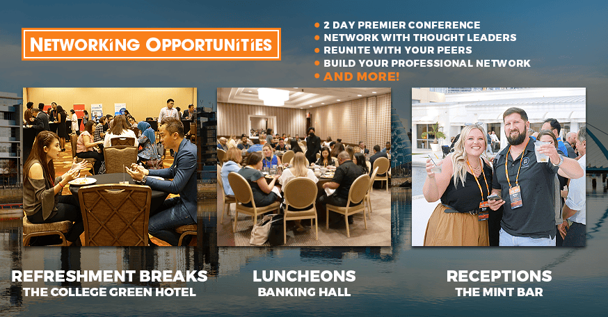 At DigiMarCon Conferences you are never ‘left in the dark’…. literally, in a large room far away from the stage and speakers, crushed in tight theater seating, without even a table, while sitting in the dark. At DigiMarCon all delegates have premium meeting space in luxurious ballroom well-lit spaces, with comfortable seating with table enabling delegates to use their laptop to take notes with ample charging facilities onsite in a comfortable space to learn and thrive. All tables are situated close with direct view of the stage.